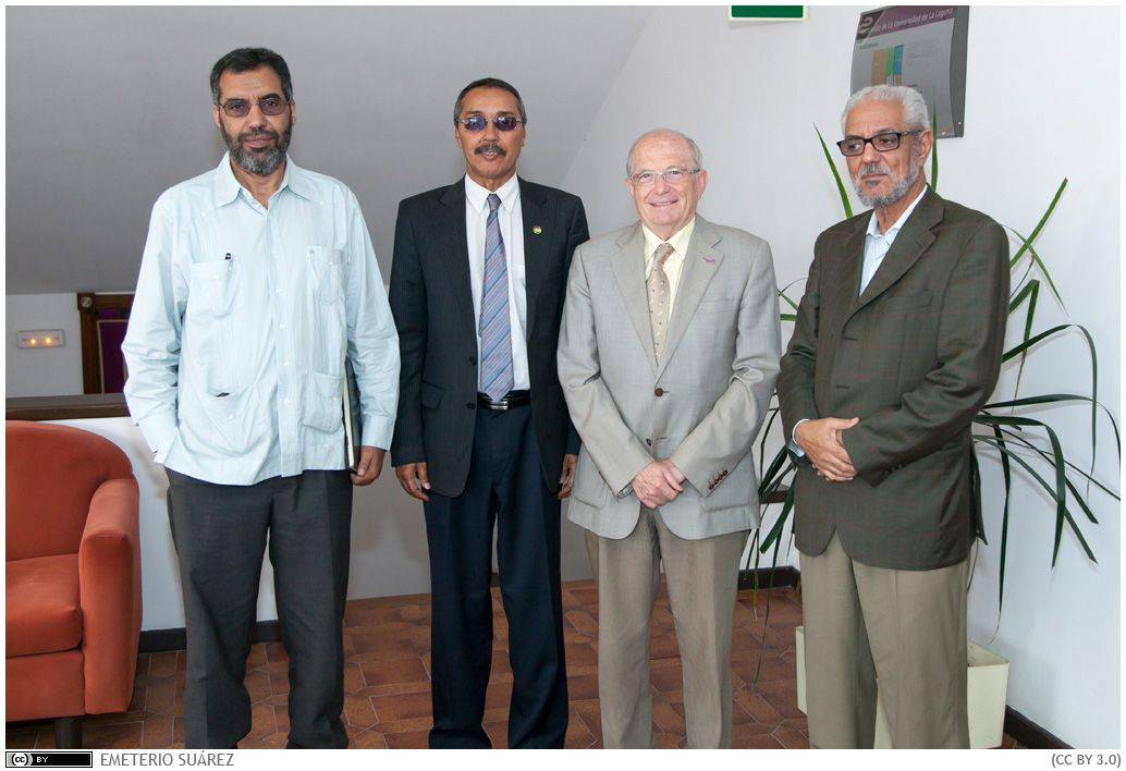 Una delegación saharaui ha visitado recientemente al rector de la Universidad de La Laguna, Eduardo Doménech, para exponerle los últimos acontecimientos políticos del Sáhara relativos a la búsqueda de consenso para llevar a cabo un referéndum amparado por la ONU acerca de su independencia. En la comitiva figuraban Bucharaya Beyun, delegado del Frente Polisario en España; Jatri Aduh, presidente del Parlamento saharaui; y Hamdi Mansur, delegado del Frente Polisario en Canarias. Si bien la vista hay que enmarcarla en una ronda nacional, los saharauis expresaron al rector el especial apoyo que la ULL siempre ha mostrado hacia su causa, al tiempo que le invitaron a participar en una conferencia nacional con otras universidades, a lo que Doménech aceptó gustosamente.