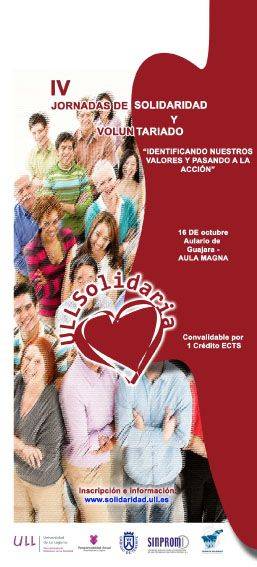 El Vicerrectorado de Relaciones con la Sociedad de la Universidad de La Laguna y el Cabildo Insular de Tenerife organizan las IV Jornadas de Solidaridad y Voluntariado, que se celebrarán mañana, viernes 16 de octubre a partir de las 9:00 horas en el Aula Magna del Campus de Guajara. En ellas se reunirán varias organizaciones solidarias de Tenerife para reflexionar sobre sus acciones y proponer mejoras para potenciar su eficacia.