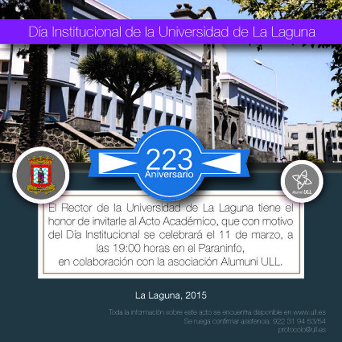 Un real decreto firmado por Carlos IV el 11 de marzo de 1792 significó el inicio de lo que, con los años, se convertiría en la Universidad de La Laguna. Para celebrar ese acontecimiento, la institución académica tinerfeña celebra en esa fecha su Día Institucional. El de 2015, correspondiente al 223º aniversario de su fundación, se celebrará mañana a partir de las 19 horas en el Paraninfo.