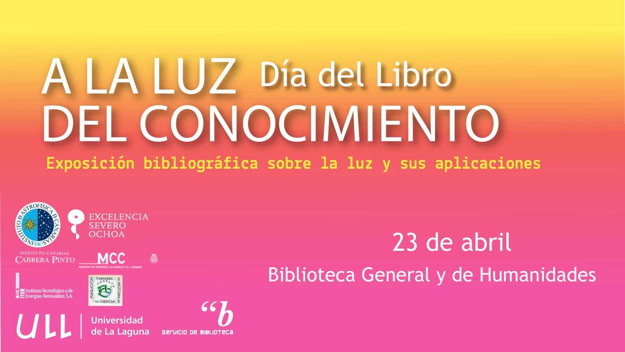La Universidad de La Laguna organiza cada año, con motivo de la celebración del Día del Libro el 23 de abril, una serie de actividades que, relacionadas con el patrimonio bibliográfico, giran en torno a una temática bien definida. Dado que 2015 ha sido declarado por la Organización de las Naciones Unidas como “Año Internacional de la Luz y las tecnologías basadas en la luz”, en esta ocasión las actividades abordarán, precisamente, las aplicaciones de las fuentes lumínicas en la física y en la astrofísica.