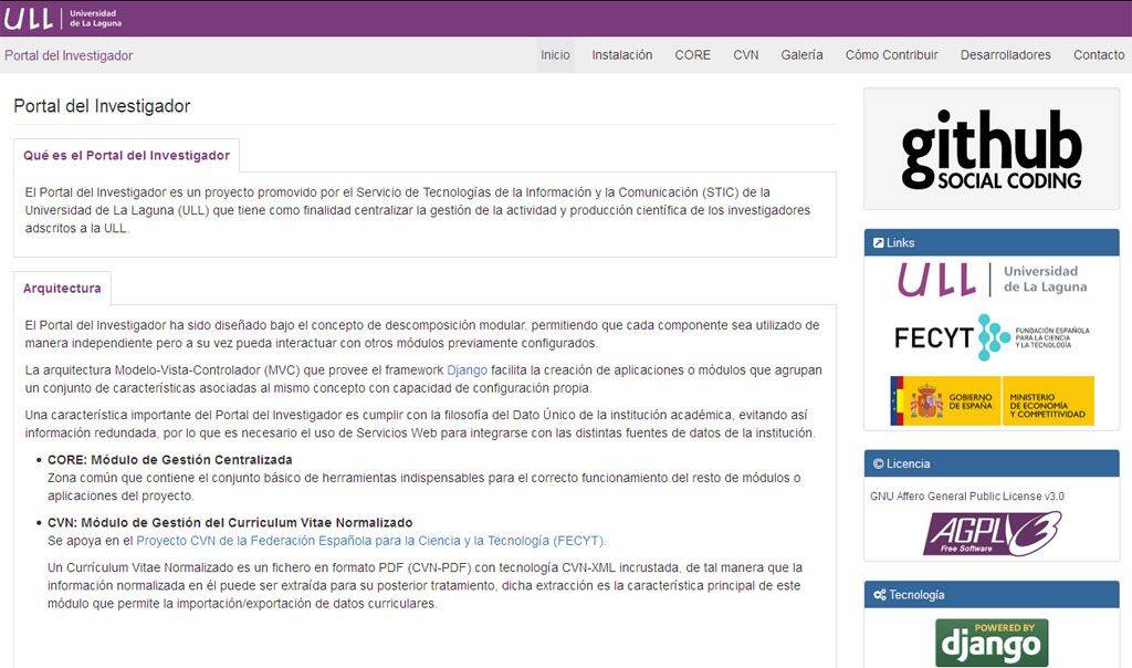 La Universidad de La Laguna es una institución que desde hace varios años está promoviendo medidas para impulsar el Software Libre. La más reciente ha sido liberar el código del proyecto del Portal del Investigador. Este proyecto se ha desarrollado como colaboración entre dos vicerrectorados, el de Investigación e Internacionalización y el de Tecnologías de la Información y de las Comunicaciones y Servicios Universitarios, y ha supuesto un hito muy importante para la institución al facilitar la gestión de los Curriculums Vitae Normalizados (CVN) de todos sus investigadores de la ULL.