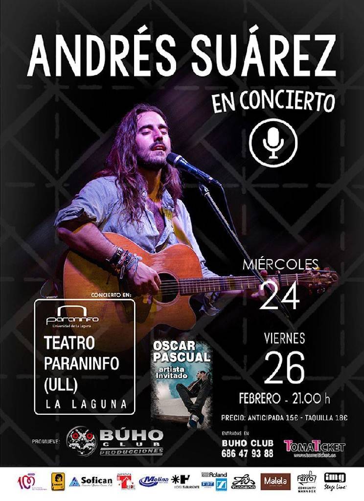 El cantautor Andrés Suárez regresa de nuevo al Paraninfo de la Universidad de La Laguna. El gallego ha sabido conquistar con sus letras al público tinerfeño: en apenas un mes colgó el cartel de entradas agotadas para su concierto del 26 de febrero. El reclamo de sus fans hizo que el Paraninfo habilitara una nueva fecha, mañana, miércoles 24 de febrero, donde a partir de las 21:15 horas sus incondicionales podrán escuchar su último disco, “Mi pequeña historia”.