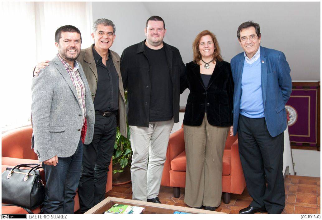 La agrupación coral de la Universidad de La Laguna Camerata Lacunensis, dirigida por José Herrero, ha lanzado un nuevo trabajo discográfico con la “Música Coral sobre Poetas Canarios” del maestro Dante Andreo. La semana pasada visitó el rectorado de la institución académica, donde presentó su última obra la rector, Antonio Martinón, y al vicerrector de Relaciones con la sociedad, Francisco García.