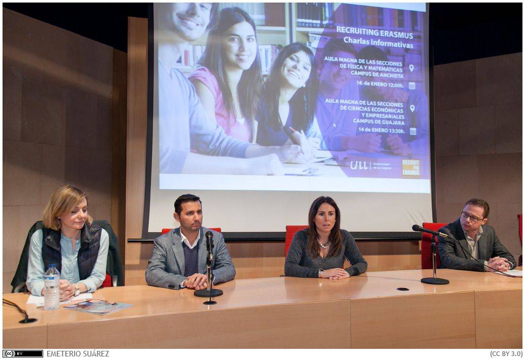 El Vicerrectorado de Internacionalización de la Universidad de La Laguna ha organizado hoy, jueves 14 de enero, dos actos de presentación del programa Recruiting Erasmus, mediante el cual la empresa People Matters trata de mejorar la inserción laboral del alumnado que ha participado en este programa de intercambio internacional poniéndolo en contacto con grandes compañías que buscan personal.
