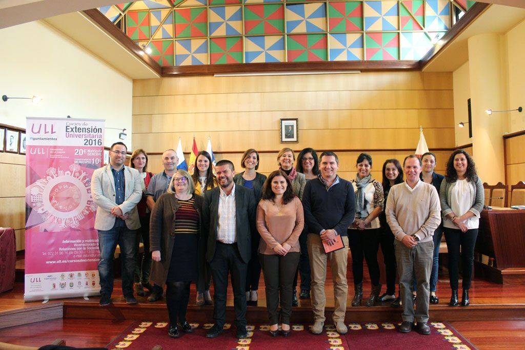 El Salón de Plenos del Ayuntamiento de Candelaria acogió hoy, martes, 12 de abril, la presentación del programa de cursos de extensión universitaria para este año 2016, que organiza la Universidad de La Laguna en 13 municipios de Tenerife: Arafo, Candelaria, El Rosario, Güímar, Icod de Los Vinos, La Guancha, La Victoria de Acentejo, Los Silos, San Juan de la Rambla, Santa Úrsula, Santiago del Teide y Tacoronte.