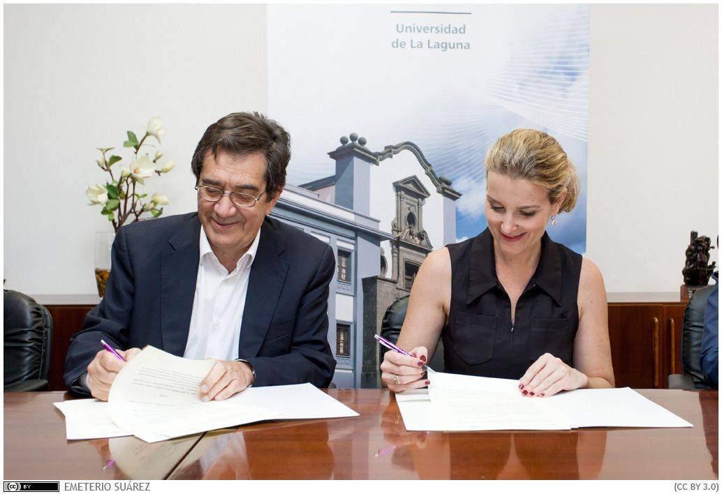 La Universidad de La Laguna y el Centro de Especialidades Protésico Sanitarias de Canarias Grupo Dentazul han firmado esta semana un convenio de colaboración de para poner en marcha proyectos formativos comunes. Por parte de la institución académica firmó el acuerdo su rector, Antonio Martinón, mientras que por la empresa lo hicieron su administrador, Miguel Ángel Huertas Moreno, y su coordinadora docente, Mª Victoria Palazón Tudela.