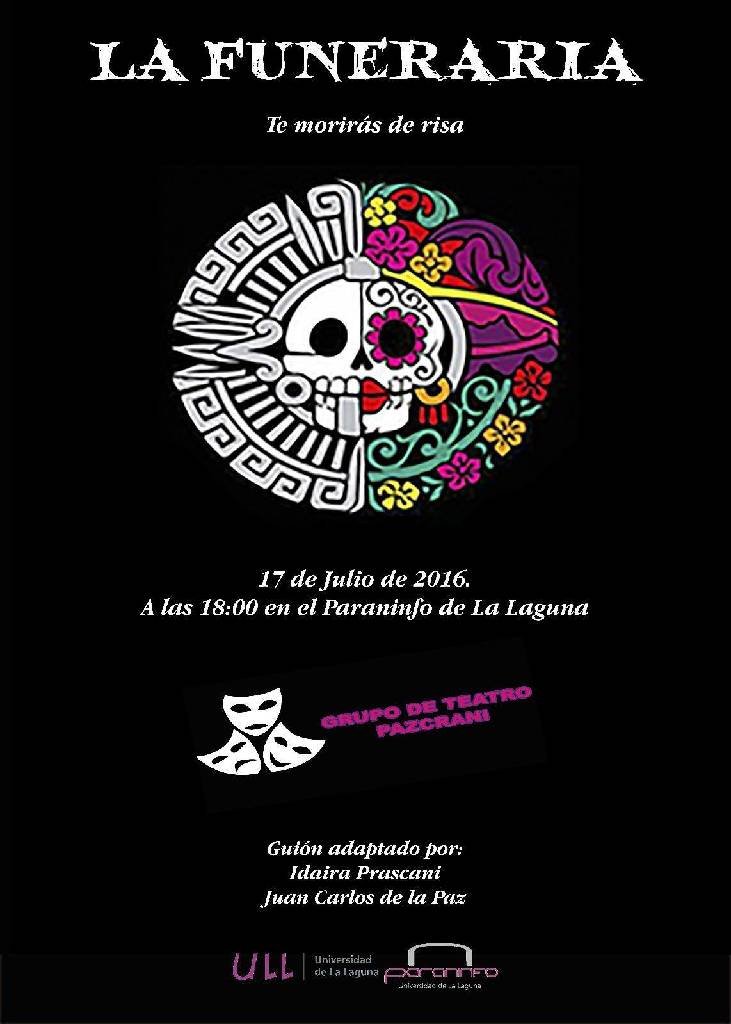 La compañía de teatro Pazcrani estrena el domingo 17 de julio, a las 18:00 horas en el Paraninfo de la Universidad de La Laguna, la obra “La Funeraria”, con guión adaptado por Juan Carlos de La Paz e Idaira Prascani.