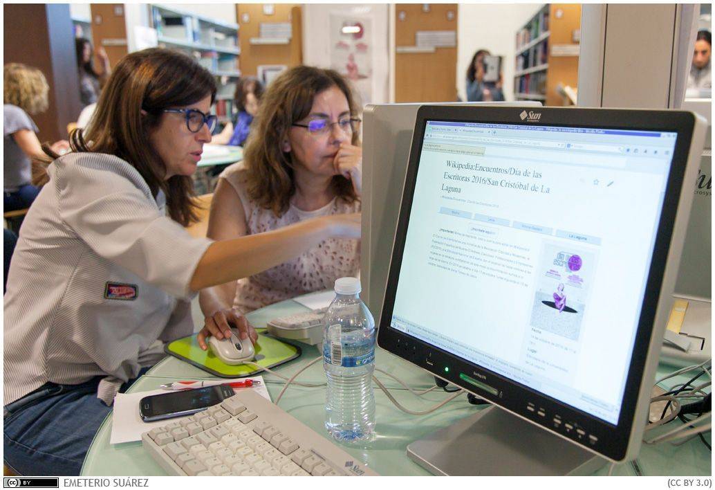 La Biblioteca General y de Humanidades del Campus de Guajara ha acogido hoy, viernes 14 de octubre, una curiosa actividad dirigida a mejorar la presencia de escritoras canarias en Internet: una “editatona”, o reunión en la que varios voluntarios y voluntarias se reúnen para editar la conocida enciclopedia virtual Wikipedia e introducir en ella entradas sobre autoras de las Islas que hasta ahora no estaban registradas en esta base documental.