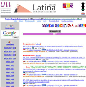 De este modo, la Revista Latina de Comunicación Social ha pasado a estar clasificada en una posición superior a la de publicaciones de referencia editadas por universidades como la de Navarra, País Vasco, Complutense de Madrid, Autónoma de Barcelona o Zaragoza. La clasificación puede consultarse en este enlace.