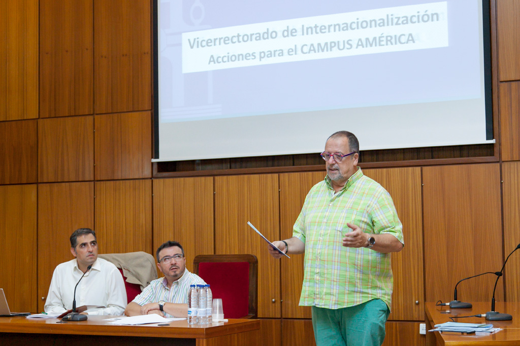 A continuación, el director de Secretariado de Cooperación Internacional del Vicerrectorado de Internacionalización, Antonio Cano, explicó las actividades que, en el seno de campus América, va a organizarse para promover la internacionalización entre el alumnado y fortalecer la colaboración e intercambio con instituciones americanas, tanto del norte como del sur.