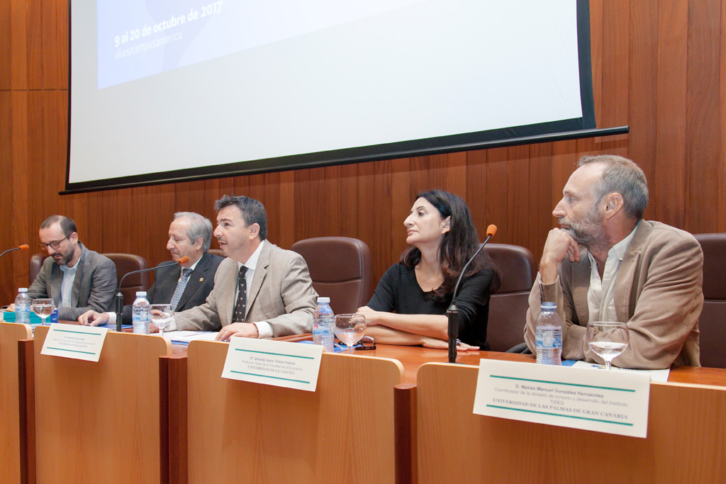 Matías Manuel González Hernández, coordinador de la división de turismo y desarrollo del Instituto TIDES de la Universidad de Las Palmas de Gran Canaria, Daniel Meziat Luna, catedrático emérito de la Universidad de Alcalá y director de la Cátedra UNESCO de Educación Científica para América Latina y el Caribe de la Universidad de Alcalá, Jorge Solana, secretario de cooperación internacional de la sectorial de Internacionalización y cooperación CRUE y Zenaida Jesús Toledo Padrón, profesora Titular de la Facultad de la Educación de la Universidad de La Laguna fueron los encargados de analizar cuáles son estos retos y cómo se deben afrontar de cara a llegar a un panorama de cooperación internacional efectivo.