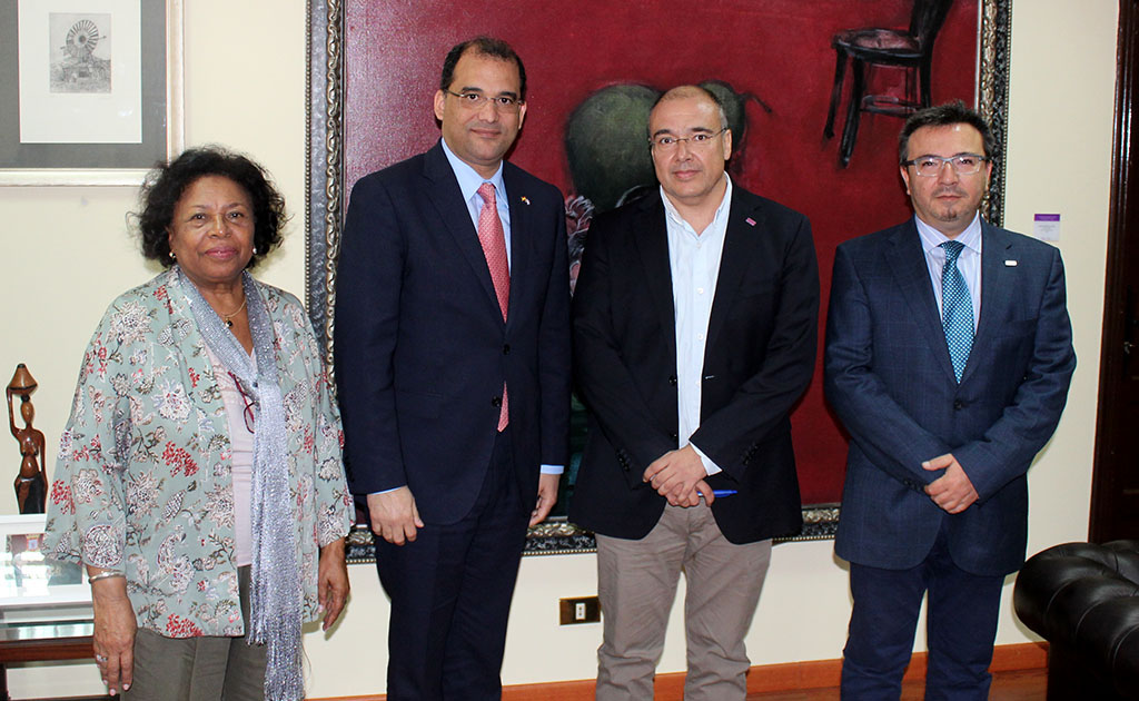 El embajador de la República Dominicana en España, Olivo Rodríguez, visitó hoy al rector de la Universidad de La Laguna, Francisco Almeida en sustitución de Antonio Martinón, en la idea de buscar líneas de cooperación educativa comunes. Acompañado de la cónsul en Canarias del citado país, Mireya Bautista, el diplomático realizó un esbozo sobre el sistema universitario de su nación, aquejado de falta de programas de doctorado en todas las ramas del conocimiento. Almeida recordó que precisamente que el doctorado abre la puerta a futuras colaboraciones científicas, por lo que se valoró la posible colaboración con tres universidades del país. El embajador, que felicitó a la ULL por la reciente celebración de Campus América, agregó que estudiará con la ministra de Educación la estrategia para poner en marcha esta vía de colaboración. En la reunión también estuvo presente Antonio Cano, director de Secretariado de Cooperación Internacional.