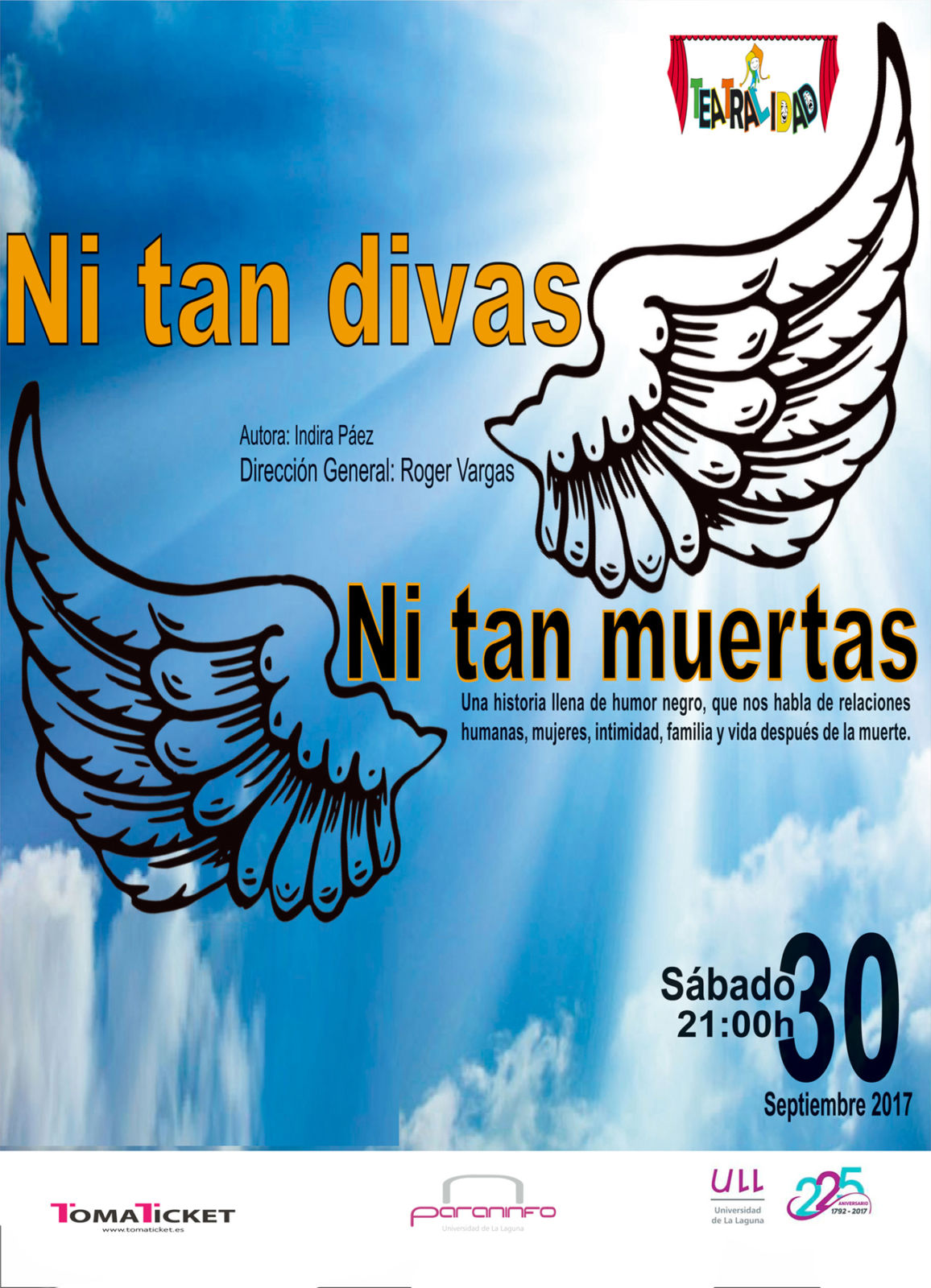 La compañía Teatralidad dirigida por Roger Borges escenificará la comedia “Ni tan divas ni tan muertas” mañana, sábado 30 de septiembre a las 21:00 horas en el Paraninfo de la Universidad de La Laguna.