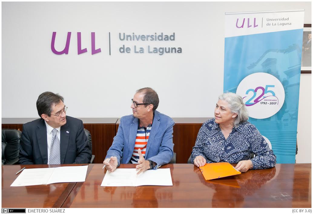 La Universidad de La Laguna y Recycling Canarias han firmado hoy, miércoles 15 de marzo, un protocolo general de colaboración mediante el cual se pretende impulsar el reciclaje de residuos textiles, área de especialización de la empresa firmante. Por parte de la institución académica rubricó el documento su rector, Antonio Martinón, mientras que por la compañía lo hizo su apoderado, Marcelo Jordá.