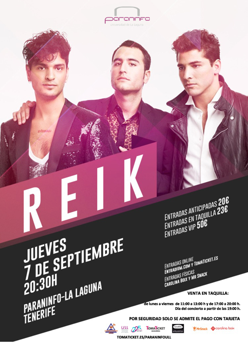 El trío mexicano Reik recala por primera vez en Tenerife tras doce años sobre los escenarios y un gran número de fans por todo el mundo. La cita será mañana, jueves 7 de septiembre, a partir de las 20:30 horas en el Paraninfo de la Universidad de La Laguna.