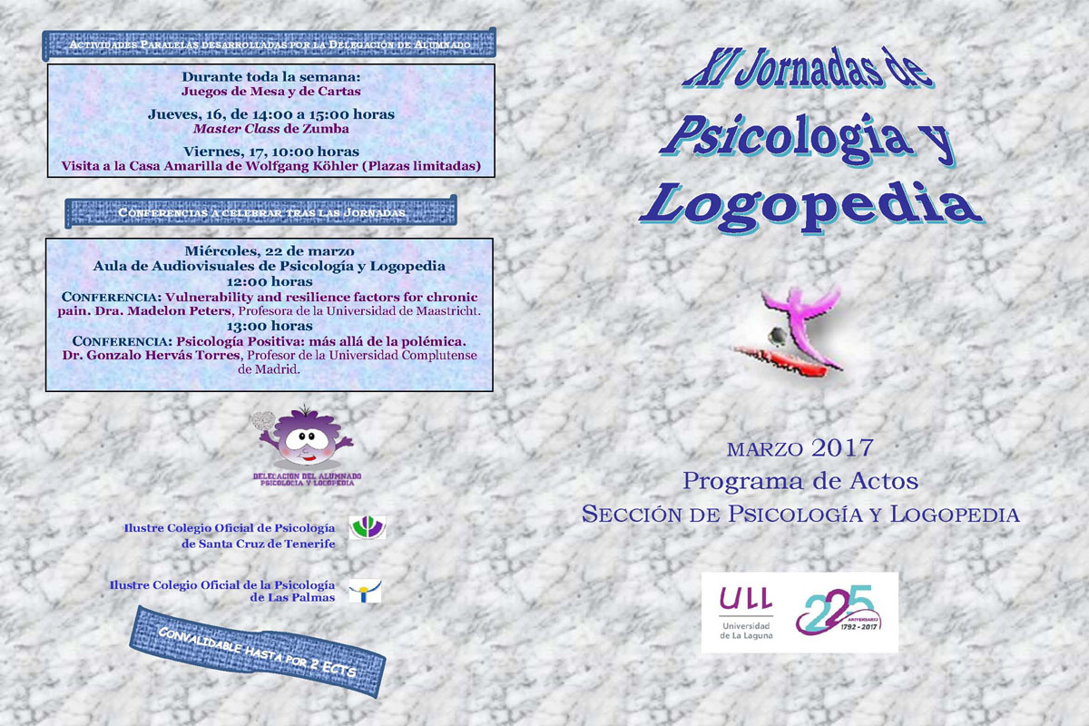 La Sección de Psicología y Logopedia de la Facultad de Ciencias de la Salud de la Universidad de La Laguna celebrará desde el martes 14 hasta el jueves 16 de marzo, la onceava edición de las ya tradicionales jornadas de conferencias, talleres y otras actividades organizadas con el objetivo de divulgar estas disciplinas y motivar a su alumnado. Están organizadas en colaboración con los colegios oficiales de Psicólogos de Santa Cruz de Tenerife y de Las Palmas, así como la delegación de estudiantes del centro académico.