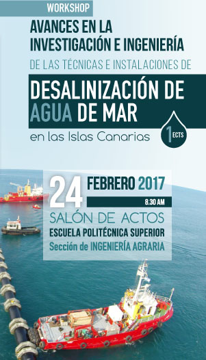 La Sección de Ingeniería Agraria de la Escuela Politécnica Superior de Ingeniería de La Universidad de La Laguna pone en marcha mañana, viernes 24 de febrero, el taller sobre “Avances en la investigación e ingeniería de las técnicas de desalinización en las Islas Canarias”, que se celebrará en el Aula Magna de la sede de la sección organizadora.