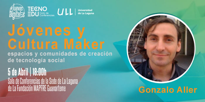 La siguiente ponencia la realizará Gonzalo Aller Arias, experto en el impacto de las tecnologías en la sociedad, con el título “Jóvenes y Cultura Maker: espacios y comunidades de creación de tecnología social”. El ponente tiene una larga trayectoria en el uso de la tecnología y del impacto positivo en la sociedad, siendo Peer en Fotón Sistemas Inteligentes (empresa dedicada a sistemas, desarrollo y tecnologías web) y en ImproveChange (consultoría en ayudar a organizaciones a crear propuestas de valor compartido y en organizar maker spaces). Además, es Maker en Hangar Kreitek (Tenerife Hackers/Makers/Space), Organizador en GDG (Google Developer Group) Tenerife y «Frotón» en varios proyectos relacionados con la tecnología y la sociedad. El evento tendrá lugar el día 5 de abril a las 18:00h en la sede de la Fundación MAPFRE Guanarteme, La Laguna. Como en los anteriores casos, la entrada será gratuita mediante inscripción previa desde la web de la Cátedra.