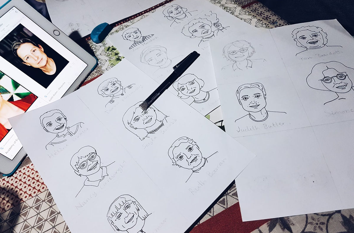Hasta la fecha, las autoras que han protagonizado esta campaña han sido Simone de Beauvoir, Elizabeth Margaret Ascombe, Martha Nussbaum, Rosi Braidotti, Simone Weil, Susan Haack y Patricia Churchland. El profesorado y personal investigador de la sección ha realizado semblanzas de cada una de ellas, las cuales están ilustradas por dibujos originales de Elena Gutiérrez Roecker expresamente creados para la ocasión.