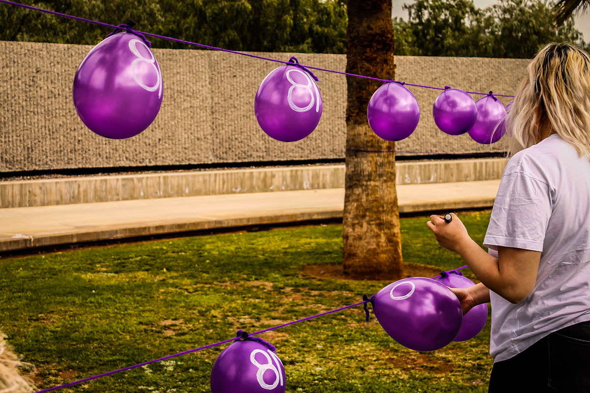 La primera de las instalaciones se centra en la temática de la discriminación social, y consiste en un mural en el cual a lo largo de la jornada de hoy se podrán escribir testimonios sobre la desigualdad. El mural será cubierto mañana por una capa de pintura violeta que tapará todas esas inscripciones, para simbolizar la batalla feminista contra estos abusos.