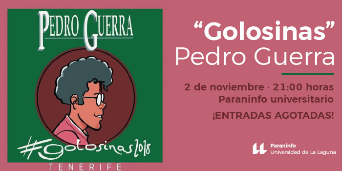El cantautor Pedro Guerra iniciará el viernes, 2 de noviembre, su gira Golosinas 2018 con un concierto en el Paraninfo de la Universidad de La Laguna, para el que ya no quedan entradas. Será el primer recital que ofrezca en Canarias tras la publicación hace poco más de un mes de una nueva edición de su mítico álbum Golosinas, uno de los discos más escuchados en la década de los noventa en España y que alcanzó el disco de platino con más de 100.000 copias vendidas en nuestro país.