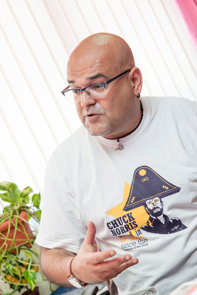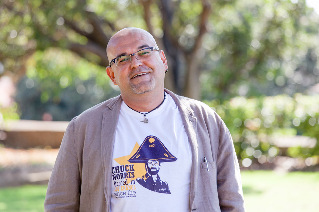 El escritor grancanario Alexis Ravelo ha cultivado numerosos géneros literarios, si bien es especialmente conocido en el género negro, con una serie dedicada al marino retirado Eladio Monroy, que ya ha llegado a su quinta entrega, y títulos como La estrategia del pequinés, galardonada con el Premio Dashiell Hammett en 2014 y recientemente adaptada al cine. El novelista fue invitado por la Cátedra Cultural Alexander von Humboldt de la Universidad de La Laguna a participar en las I Jornada de Traducción Literaria e Interculturalidad, en la que, además de dictar una conferencia sobre su escritura, tuvo la oportunidad de reunirse por primera vez en persona con Amandine Py, traductora de sus obras al francés.