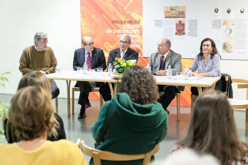Durante la inauguración, la Agrupación de Teatro de Filología ofreció una pequeña actuación titulada “Todo se desvanece en el aire: Betancourt versus Viera”, tras la cual se celebró un coloquio en torno a la figura del ingeniero ilustrado, en el cual participaron uno de los comisarios de la muestra, Amílcar Martín; uno de los descendientes de la familia Betancourt, Juan Cullen; la directora del instituto Universitario de Estudios de las Mujeres, Inmaculada Perdomo; y el coordinador del Proyecto Agustín de Betancourt de la Fundación Canaria Orotava de Historia de la Ciencia, Alberto Relancio, bajo la moderación de la vicerrectora de Infraestructuras y Servicios Universitarios, Norena Martín.