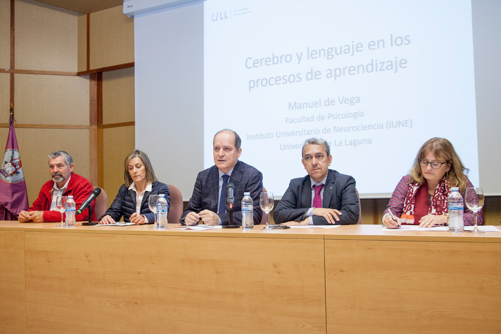 Tras la apertura protocolaria, el director del Instituto Universitario de Neurociencia de la ULL, Manuel de Vega, presentó al público el devenir del centro que dirige, cuya creación se remonta a unos cinco años en el pasado, los cuales, pese a suponer un periodo relativamente corto, han supuesto una trayectoria no exenta de dificultades.