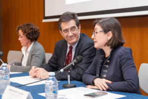 La vicerrectora de Docencia explicó que en el transcurso de esta jornada también se celebraría una reunión del grupo sobre Enseñanza en Línea de la Conferencia de Rectores de Universidades Españolas (CRUE), razón por la cual en el primer día de este encuentro, además de las personas inscritas, también se cuenta la presencia de varios vicerrectores de universidades nacionales. Jiménez Abizanda explicó la estructura de este encuentro, que combina las conferencias plenarias con diversas mesas de debate.