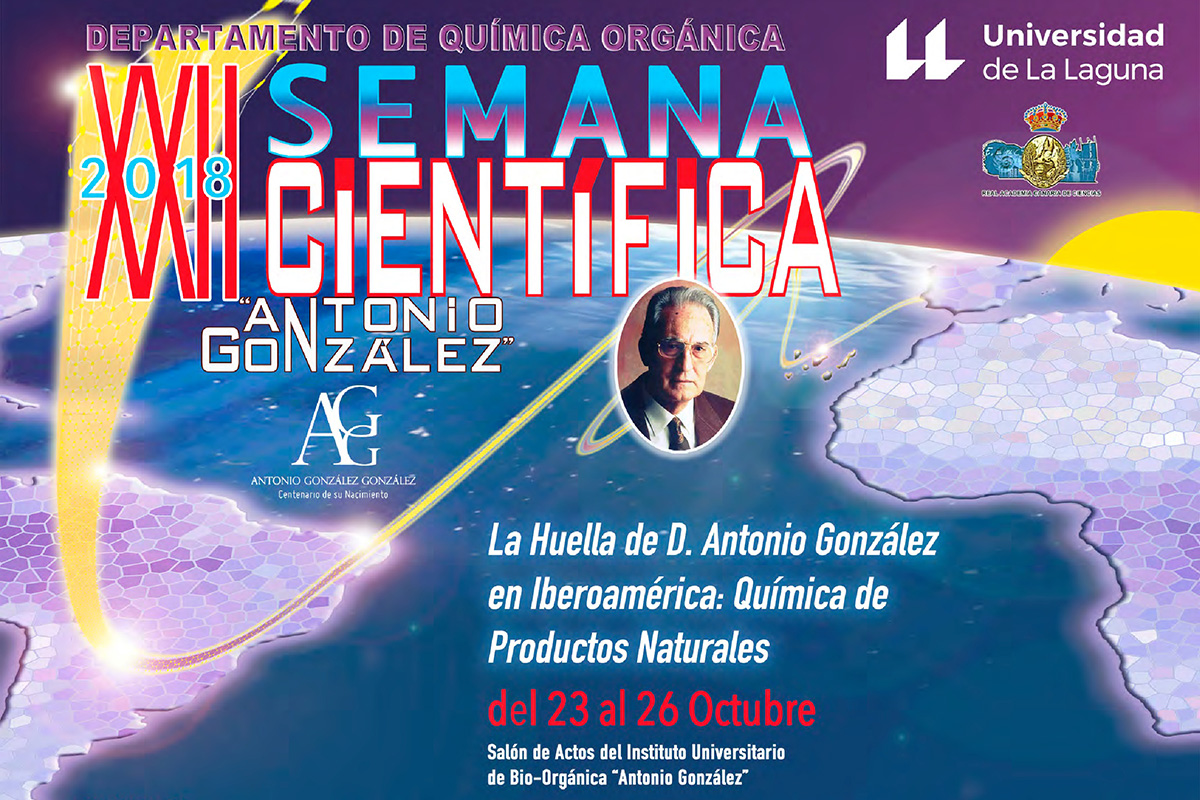 Desde finales de 2017, la Real Academia Canaria de Ciencias, en colaboración con otras instituciones, como la Universidad de La Laguna, ha celebrado varias actividades para conmemorar el centenario del insigne químico y rector honorario del centro académico, Antonio González. El acto que servirá como colofón será la semana científica que, desde hace veintidós años, organiza el Departamento de Química Orgánica en homenaje a la figura del ilustre científico, la cual se desarrollará desde mañana, martes 23, hasta el viernes 26 de octubre en el Salón de Actos del Instituto Universitario de Bio-Orgánica Antonio González (IUBO).