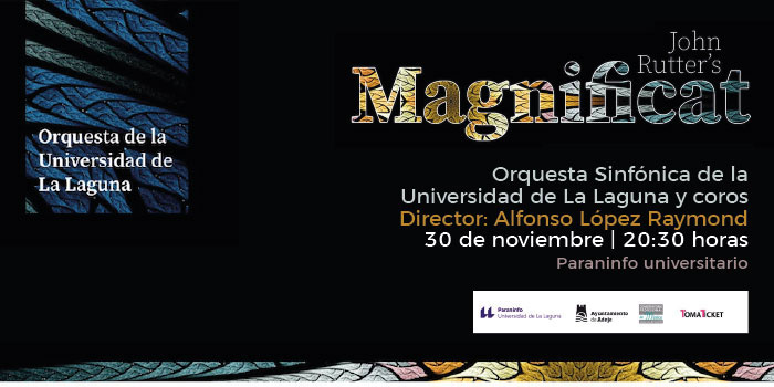 La Orquesta Sinfónica de la Universidad de La Laguna (ULL) ofrecerá el viernes, 30 de noviembre, a partir de las 20:30 horas, una representación de Magnificat, obra del compositor británico John Rutter escrita para soprano solista, coro y orquesta en 1990.