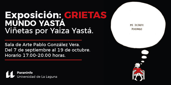 La exposición ‘Grietas’ de Yaiza Yastá en la Sala de Arte Paraninfo Pablo González Vera ha sido prorrogada hasta el 19 de octubre debido a la gran acogida que ha tenido desde su inauguración el pasado 7 de septiembre. La muestra reúne una treintena de viñetas de Mundo Yastá, un universo de pensamientos, reflexiones y sentimientos creado por la ilustradora Yaiza Pérez Moreno, conocida con el nombre artístico de Yaiza Yastá.