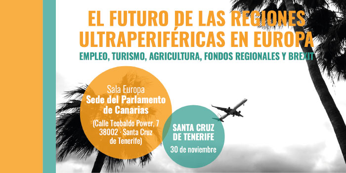 La Oficina del Parlamento Europeo en España le invita al seminario “El futuro de las regiones ultraperiféricas en Europa: empleo, turismo, agricultura, fondos regionales y Brexit”, que tendrá lugar el 30 de noviembre a las 9:30 horas en la Sala Europa (Calle Teobaldo Powe, 7) de Santa Cruz de Tenerife. Aprovecha la oportunidad de conocer las políticas europeas que afectan a las Canarias y a otras regiones y súmate al debate sobre el Brexit y otros desafíos a los que se enfrenta la UE.