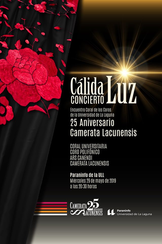 El Paraninfo de la Universidad de La Laguna celebrará mañana miércoles, 29 de mayo, a partir de las 20:30 horas, el concierto Cálida Luz, dentro del Encuentro Coral de los Coros de la ULL con motivo del 25 aniversario de la agrupación Camerata Lacunensis.