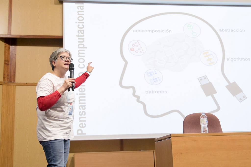 El II Programa Educativo para el Fomento del Pensamiento Computacional, conocido como “Piens@ Computacion@ULLmente” ha sido clausurado hoy, miércoles 12 de junio, en el Aula Magna del Aulario General del Campus de Guajara de la Universidad de La Laguna. Como explicó la profesora Coromoto León, una de sus promotoras, su propósito ha sido quitar el miedo a usar las máquinas: “Tenemos que saber decirle al dispositivo qué es lo que queremos que haga y para ello debemos conocer el lenguaje que permite decírselo. Ustedes están dando los primeros pasos”.