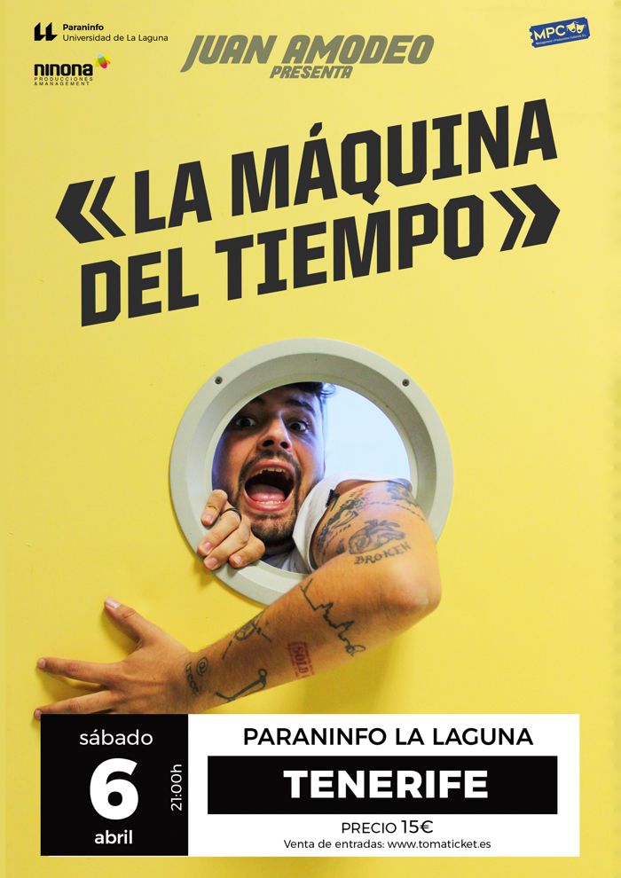 El humorista Juan Amodeo desembarca este sábado, 6 de abril, a partir de las 21:00 horas en el Paraninfo de la Universidad de La Laguna con su espectáculo ‘La máquina del tiempo’. El show encadena monólogos y situaciones hilarantes que juegan con el pasado, el presente y el futuro para dar un buen repaso a asuntos de actualidad, pero también a temas tan eternos como las relaciones de pareja.