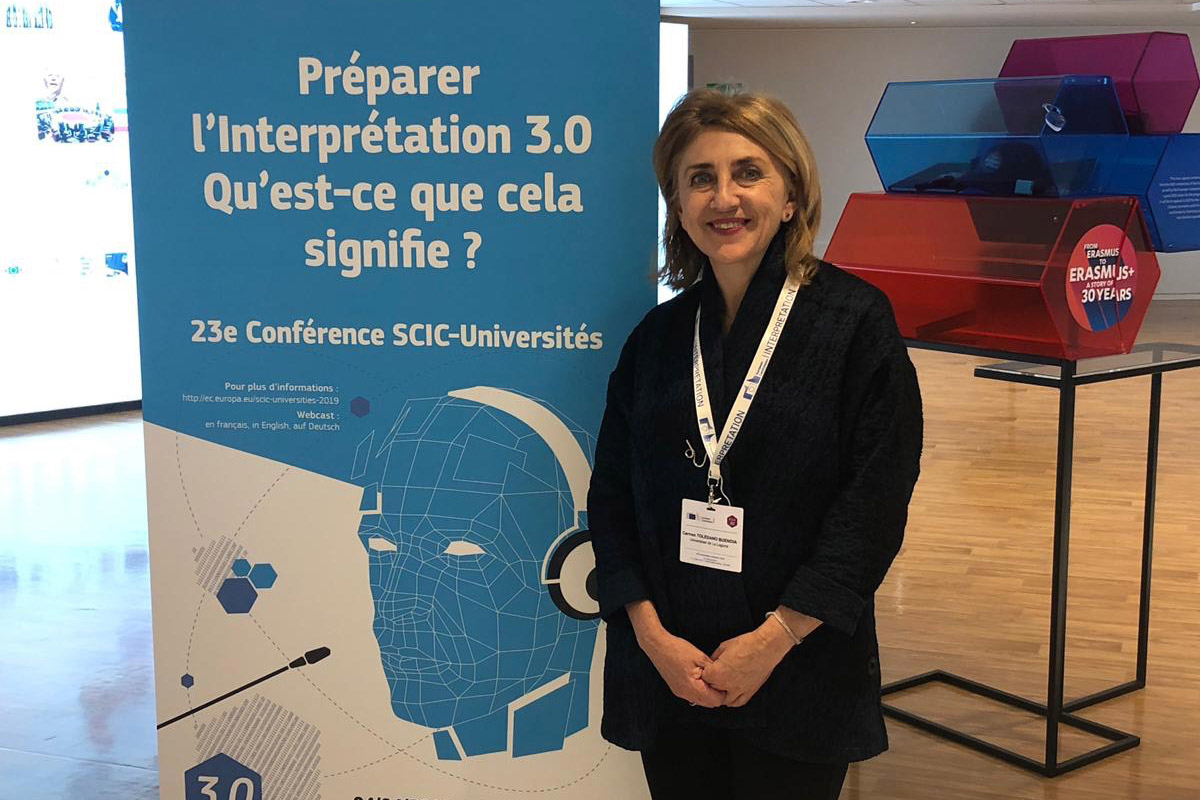 La Universidad de La Laguna, representada por la profesora Carmen Toledano, directora del Máster de Interpretación de Conferencias, ha sido invitada un año más a participar en el SCIC-Universitires Conference celebrado en Bruselas los pasados 4 y 5 de abril. Este encuentro anual organizado por la Dirección General de Interpretación de la Comisión Europea reúne a representantes de los mejores programas de formación en interpretación de conferencias de todo el mundo, así como de diversos organismos internacionales e instituciones europeas. En esta la vigésimo-tercera edición, titulada «Preparing for Interpreting 3.0», las diferentes presentaciones se centraron en el análisis de las tendencias actuales en interpretación, los cambios en la profesión como consecuencia de los nuevos avances tecnológicos (por ejemplo la interpretación remota) y sus implicaciones en la formación de las futuras generaciones de intérpretes. Asimismo, se presentaron las nuevas líneas del sistema de apoyo del SCIC a las universidades.