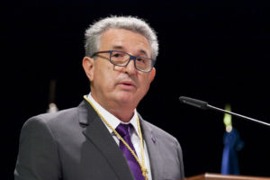 Tras un interludio musical, le tocó el turno a Ramón Rojas Hernández, director del Servicio de Deportes, quien fue presentado por el profesor Vicente Navarro Adelantado. Este docente, especialista en la didáctica del deporte, señaló que cuando ocupó un cargo de gestión de gobierno, se dio cuenta enseguida de que estaba ante un servicio “maduro y engrasado”, que si no crecía más era por limitaciones presupuestarias. Destacó de Rojas su actividad como proponente de muchos convenios para hacer que creciera este servicio, uno de los pioneros en dotarse de un portal dinámico de gestión y atención online. En 2018 recibió el reconocimiento honorífico de la Asociación Canaria de Gestión Deportiva, reconociendo así toda una trayectoria profesional. Rojas se ha esforzado por potenciar el deporte sin violencia e inclusivo, premiando y potenciando la participación de la mujer. Si bien siempre lideró el deporte competitivo en el ámbito universitario, ha estado especialmente atento al deporte de recreación y de disfrute del tiempo libre, como complemento esencial de la formación integral del universitario. Navarro lo definió como un ‘humanista del deporte’, apostando por otra visión de la actividad deportiva que aglutine valores y compromisos éticos personales.