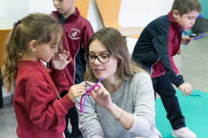 La actividad se tituló “Pequeños visitantes para grandes proyectos. Una actividad de cuentacuentos en inglés” y, como su propio nombre indica, el alumnado del grado impartió a los niños y niñas una formación sobre vocabulario en inglés basada en la narración de varios relatos, a partir de los cales se plantearía una serie de actividades. Estos cuentos, que habían sido previamente trabajados en el aula, fueron The very hungry Caterpillar, The Little red hen, Giraffes can’t dance, The very busy spider y Stellaluna.
