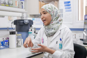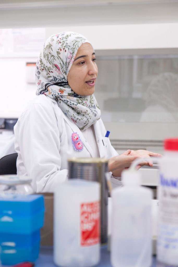 No solo se siente aceptada, sino absolutamente integrada, tanto, que bromea con cómo la gente la para por la calle para preguntarle dónde pueden adquirir los pañuelos tan coloridos y bonitos que usa a diario para cubrir su cabeza, y que son todo un símbolo de su identidad. Y es que Ines Sifaoui es ya una investigadora más de la ULL desde que hace años se estableció el convenio entre la universidad lagunera y la Universidad de Cartago (Túnez), donde cursó sus estudios y se licenció en Bioingeniería. Fue en 2016 cuando comenzó su postdoc con el programa Agustín de Betancourt, en el que lleva trabajando ya tres años, y con el que espera poder concluir el proceso de la patente del colirio.