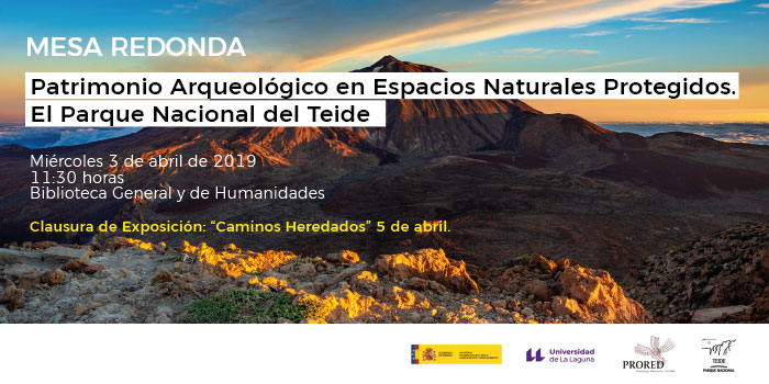 En el marco de esta exposición este miércoles 3 de abril se desarrollará la MESA REDONDA bajo el título Patrimonio arqueológico en espacio naturales protegidos. El parque Nacional del Teide, con la participación de Juan Francisco Navarro Mederos (Profesor Titular de Prehistoria de la ULL), Matilde Arnay de la Rosa (Profesora Titular de la ULL), Efraín Marrero Salas (PRORED) y Alberto Lacave Hernández (PRORED).