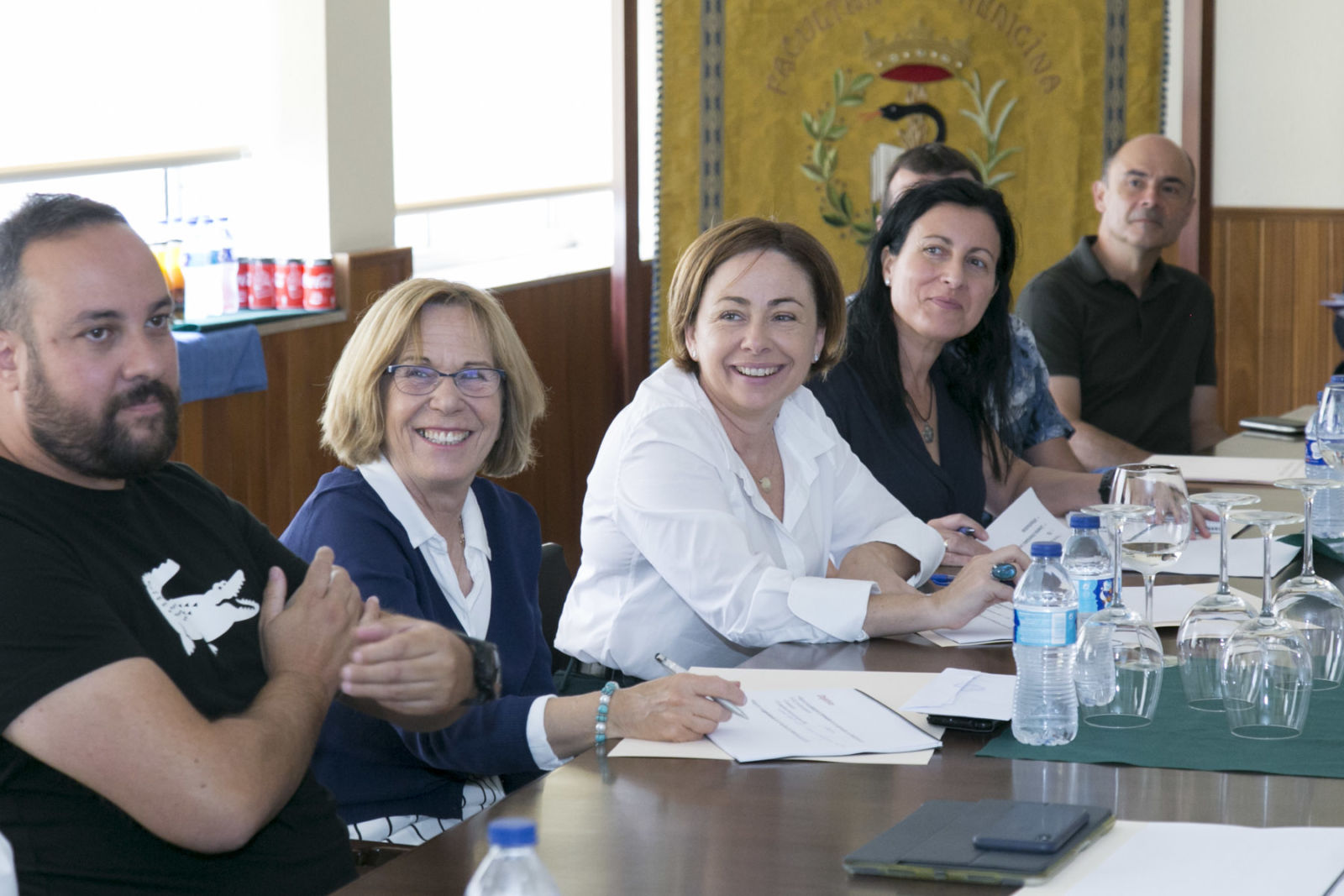 Acompañada de las vicerrectoras de Cultura y Participación y de la de Infraestructuras, Rosa Aguilar se reunió con el equipo decanal y con distintos profesores, quienes le expusieron diversas cuestiones que aquejan al centro académico. La primera, y más urgente, es la necesidad de modificación del plan de estudios, cuyos cambios fueron previstos hace dos años pero que aún no ha visto la luz. El decanato quiere implantarlo en el curso 2020/21, por lo cual urge su remisión a la agencia evaluadora lo antes posible.