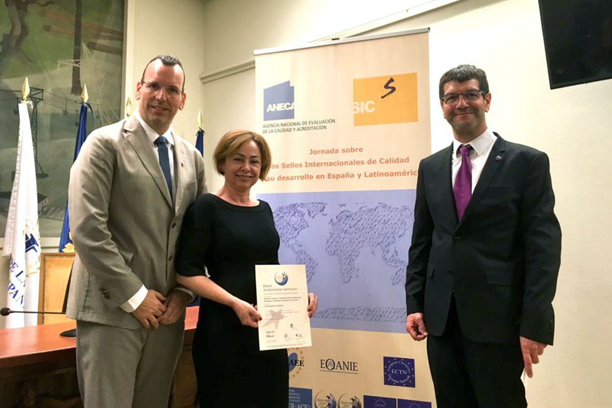 La entrega de los certificados se ha producido en el marco de la “III Jornada sobre los Sellos Internacionales de Calidad y su desarrollo en España y Latinoamérica”, organizada por ANECA y el Instituto de la Ingeniería de España (IIE) y celebrada en la sede de éste último. Concretamente, se han entregado los EURO-INF para títulos de Informática, que es el que ha recibido la Universidad de La Laguna; el EURACE® para títulos de Ingeniería; y el Chemistry Quality Eurabel® para títulos de Química.