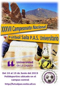 La Universidad de La Laguna es la institución académica encargada de organizar el XXXVII Campeonato Nacional de Fútbol Sala del Personal de Administración y Servicios, que se celebrará entre el 10 y el 15 de junio en las instalaciones del Servicio de Deportes del centro. En la competición participan los equipos de diez universidades: Almería, Cádiz, Vigo, Islas Baleares, Santiago de Compostela, Murcia, Granada, Oviedo, Alicante y la propia La Laguna