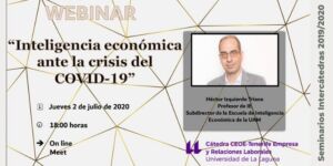 El segundo de los seminarios online organizados por esta cátedra la próxima semana indagará en cómo los sistemas de inteligencia económica pueden ser una herramienta que ayude a las organizaciones ante crisis como la del COVID-19. Será a las 18:00 horas del 2 de julio, y su ponente será Héctor Izquierdo Triana, subdirector de la Escuela de Inteligencia Económica de la Universidad Autónoma de Madrid, y nuevamente dirige Julio Antonio Brito Santana y coordina Julia Hermoso.