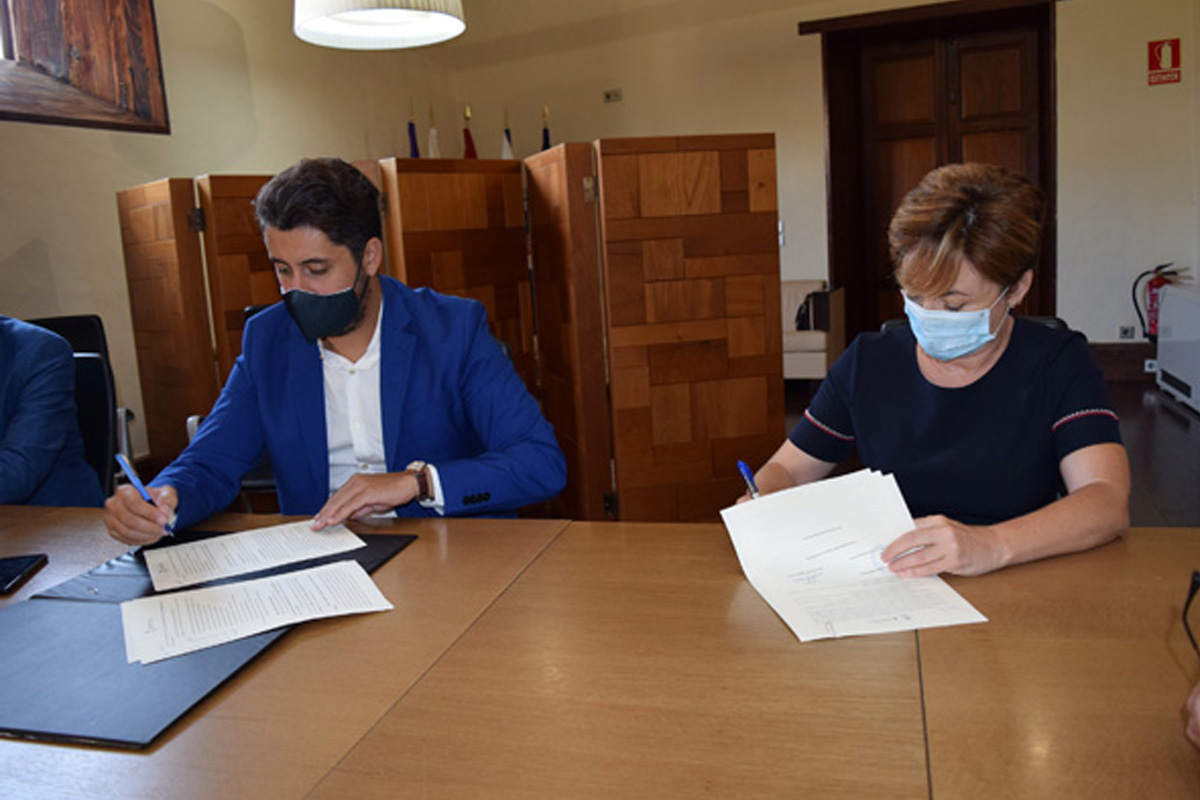 El alcalde del Ayuntamiento de La Laguna, Luis Yeray Gutiérrez, y la rectora de la Universidad de La Laguna, Rosa Aguilar, en calidad como presidenta de la Fundación General de la ULL (FGULL), han firmado este viernes el convenio de colaboración para desplegar el proyecto pionero de participación ciudadana llamado ‘Comunidad’. Se trata del último paso del proceso que da vía libre al desarrollo de este programa, con el que el Consistorio, a través de la Concejalía de Participación Ciudadana, busca movilizar a la ciudadanía para que ayude a responder de forma colectiva la crisis social y económica que ha provocado el covid-19.