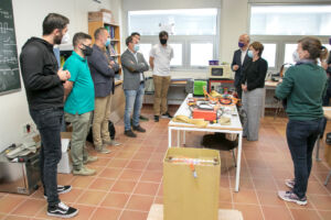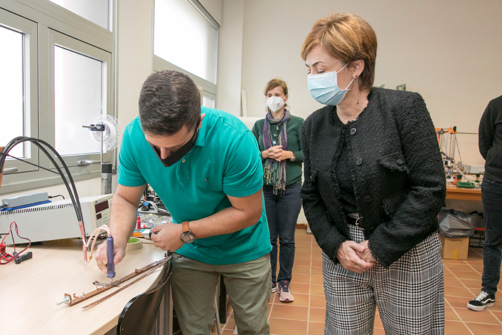 Tras el acto de firma, los estudiantes acompañaron a la rectora y el alcalde a sus talleres en la Escuela Superior de Ingeniería y Tecnología, en donde les mostraron el estado actual de los trabajos, centrados en mejorar el receptáculo en donde irán instalados los kits de baterías.