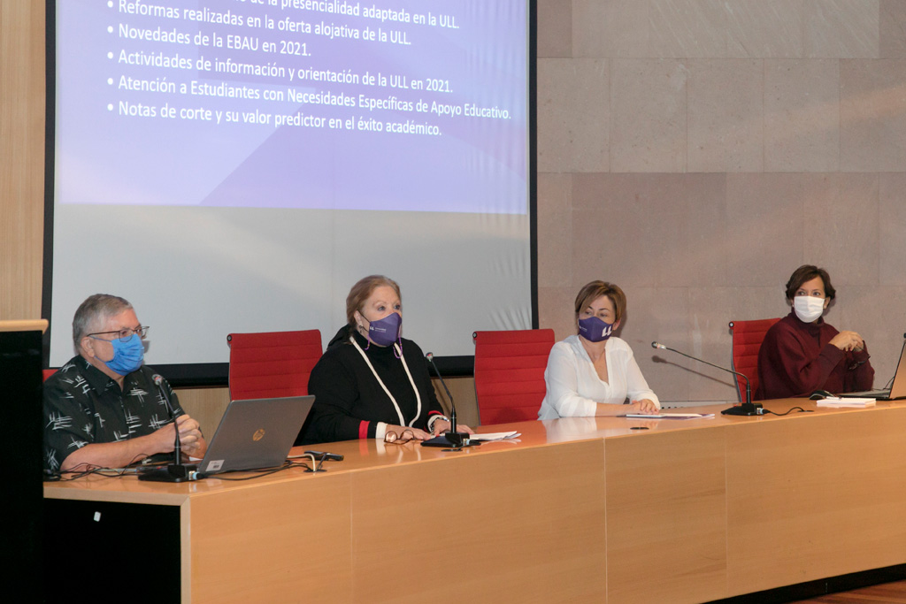La Universidad de La Lagua celebra todos los años una jornada con el personal de orientación de los centros de Secundaria de toda Canarias que sirve como inicio de los trabajos comunes que culminan con la celebración de las pruebas de acceso a la educación superior en junio. La de este año se ha celebrado hoy, jueves 10 de diciembre, y en ella las medidas de protección contra la pandemia no solamente han propiciado que su desarrollo sea telemático, sino que han centrado buena parte de los contenidos del encuentro, con explicaciones sobre cómo la institución ha afrontado esta crisis sanitaria.