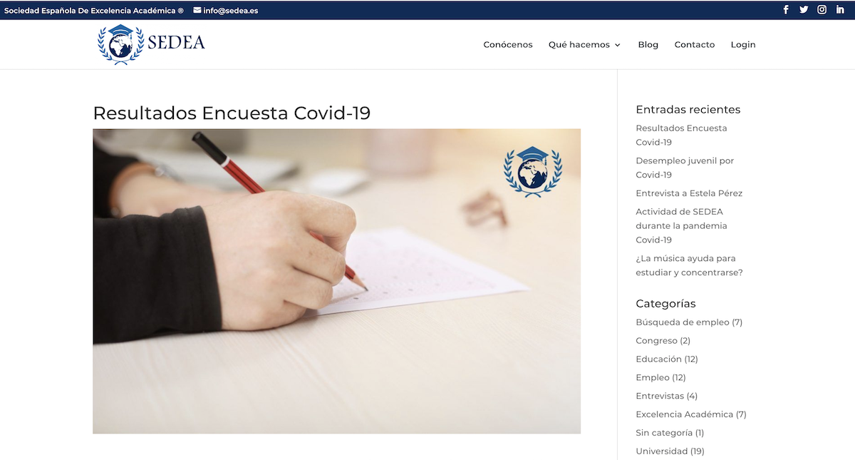 La Encuesta Covid-19 se desarrolló del 19 de abril al 20 de mayo, con el propósito de evaluar la opinión de los universitarios sobre los efectos de la pandemia en sus estudios y en su empleabilidad y sobre la gestión realizada por las universidades. Se ha contado con el apoyo de José David Urchaga, profesor de la Universidad Pontificia de Salamanca, para el tratamiento de los datos.