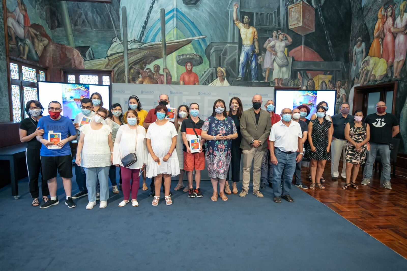 El Cabildo de Tenerife acogió recientemente la presentación del poemario audiovisual La Isla Inventada, una obra representada por la compañía de artes escénicas Giro Arte, de la Sociedad Insular para la Promoción de las Personas con Discapacidad, Sinpromi. La consejera insular de Acción Social, Marián Franquet, explica que esta pieza teatral es el resultado del trabajo escénico presencial, realizado desde el comienzo de temporada y que se vio interrumpido por la crisis sanitaria provocada por la Covid-19, por lo que el grupo adaptó la representación prevista en el Paraninfo de la Universidad de La Laguna a una pieza de poemario audiovisual.